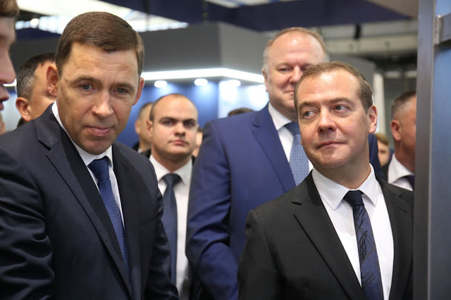 Главным гостем мероприятия стал Председатель правительства РФ Дмитрий Медведев, который осмотрел автобус-тренажер "Школа дорожной безопасности", специализированную дорожностроительную технику и полицейские автомобили.